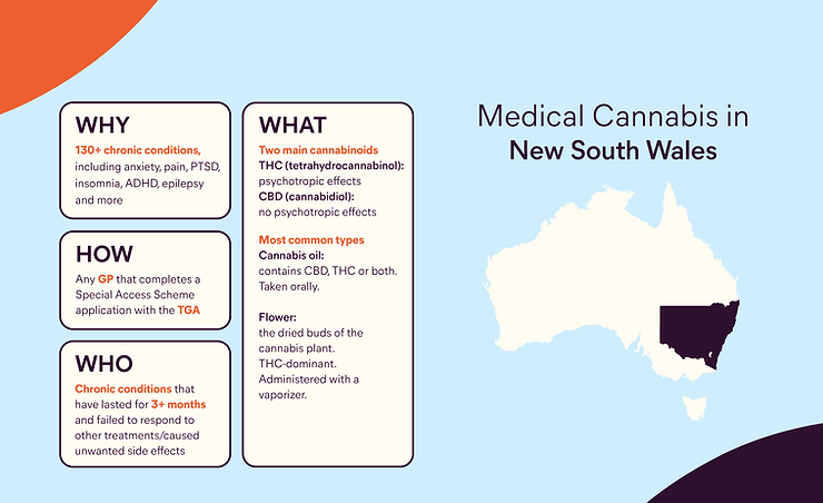 In order to obtain a medical cannabis prescription in NSW, patients must first speak to a doctor about whether they might be eligible. (Medical cannabis is sometimes referred to as medical marijuana or medical cannabinoids in New South Wales.) If their healthcare provider believes that medical cannabis may be a suitable treatment option, they can apply for access through the SAS or APS.
