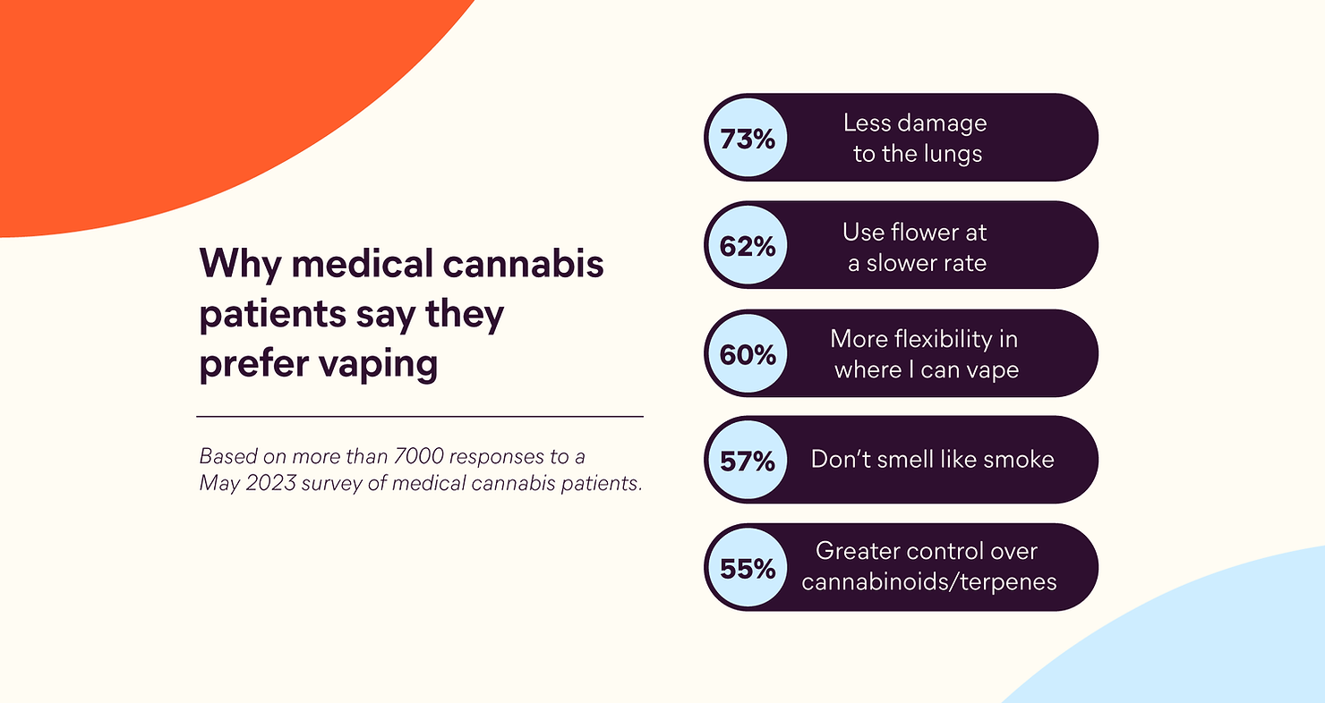 Finally, people using vaporisers use up to 40% less flower as there's less loss through "sidestream" smoke and patients don't need to use as much to feel the medical benefit.