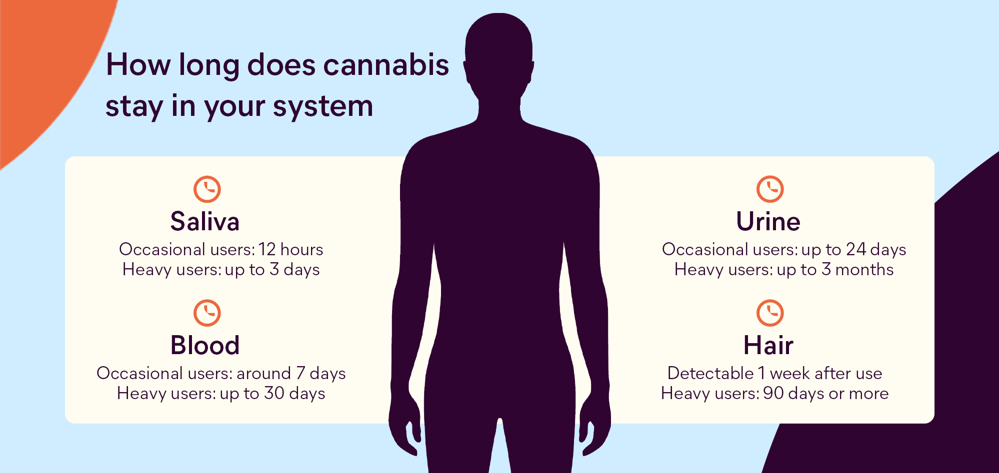 If you use medical cannabis frequently, THC may be detectable in your body for longer than casual users. This is because THC metabolites like THC-COOH build up in stored fats and organs over time as your body doesn’t have time to fully process them. THC-COOH has been detected in the system of heavy users more than 25 days post use.