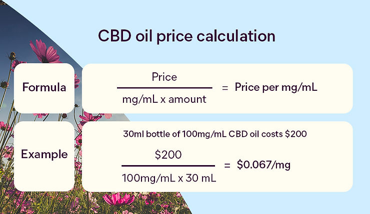 If we wanted to ask how much a prescription CBD oil was in Australia, we could calculate the per mg cost by dividing the price by the mg/ml and then multiplying it by the actual amount. For instance, if a 30ml bottle of 100mg/ml CBD oil costs $200, then $200/(100x30) = $0.067/mg.